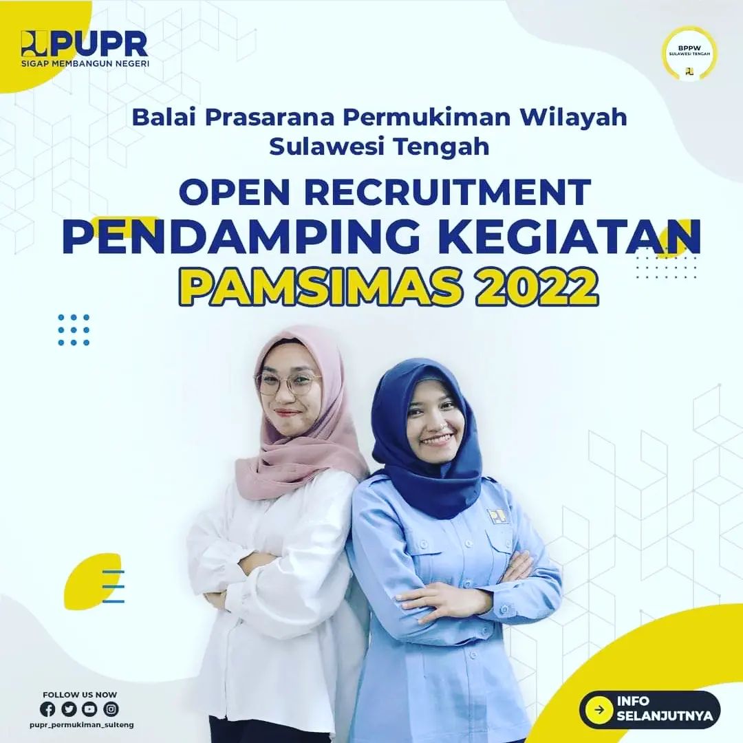 Kualifikasi : - Sarjana (S1) di bidang teknik lingkungan, teknik sipil, teknik arsitektur, administrasi publik, ekonomi, pengembangan sosial atau masyarakat, kesehatan masyarakat dan bidang terkait.