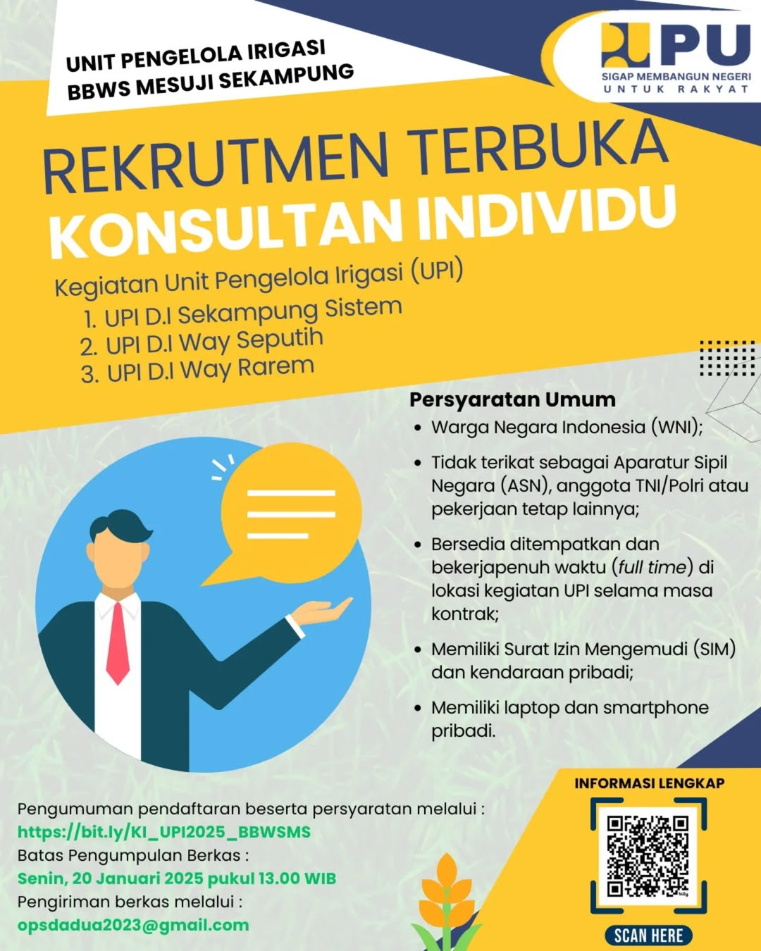 tautan https://bit.ly/KI_UPI2025_BBWSMS ; - Pendaftaran Konsultan Individu dapat dikirimkan melalui email opsdadua2023@gmail.com;