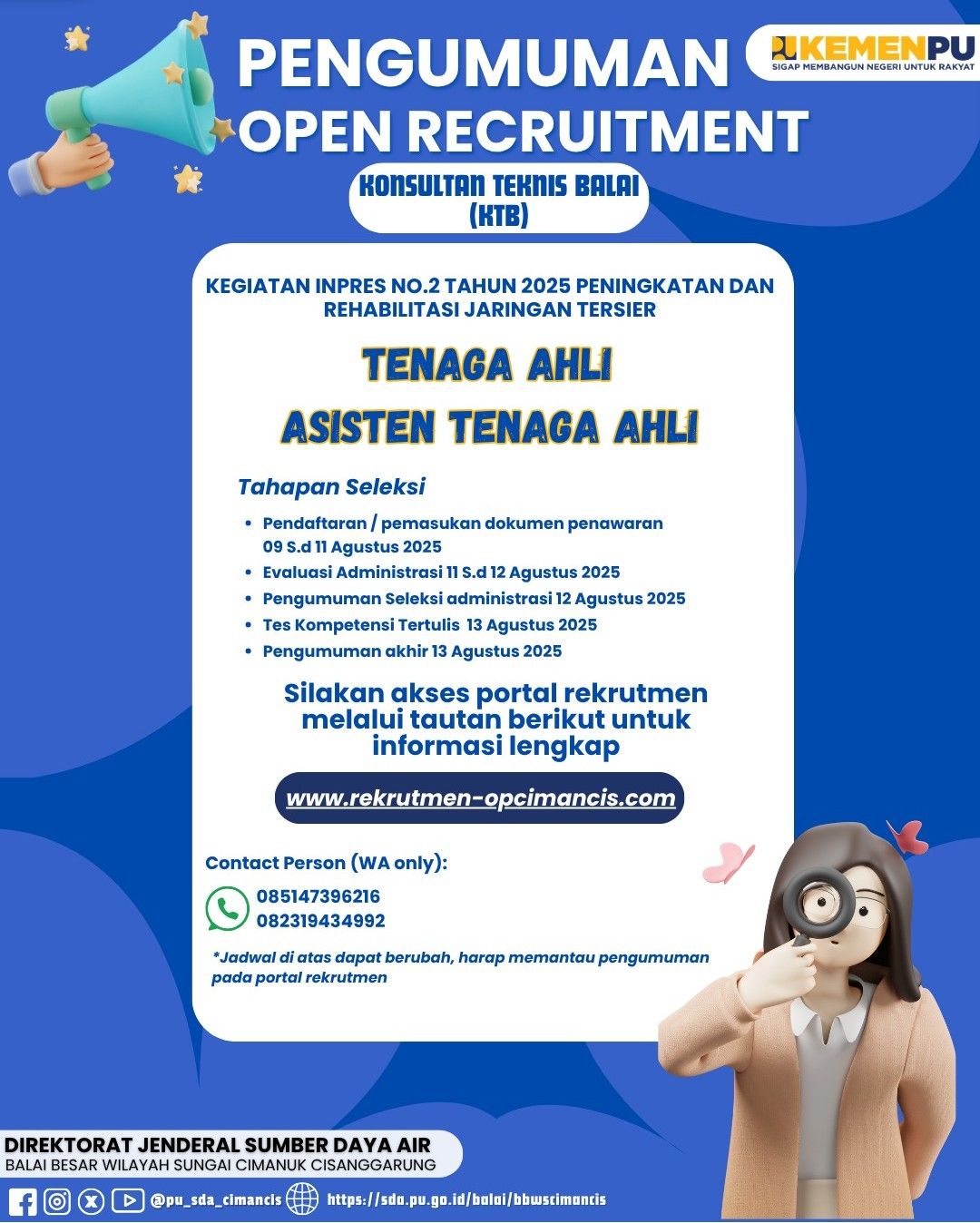Rekrutmen Pengadaan Tenaga Pendamping Masyarakat (TPM) Program Percepatan Peningkatan Tata Guna Air Irigasi (P3-TGAI) Tahun Anggaran 2025 BBWS Cimanuk Cisanggarung