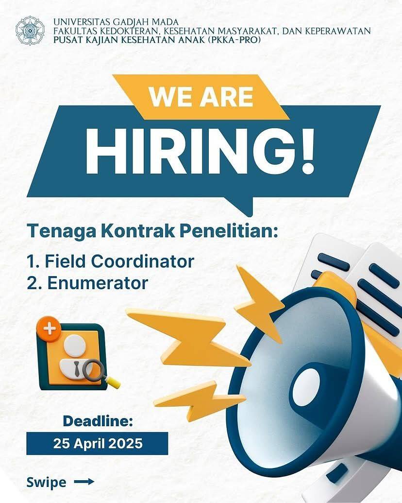 Dibutuhkan Tenaga Kontrak Peneliti, Field Coordinator dan Enumerator